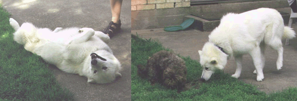 Both guard hairs and undercoat are white. Often evidence of a mask in cream color. Only solid color allowed. |