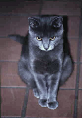 Purgy is a small female cat born in Aug '96. She looks very much like a Russian Blue except that she has gold eyes. Purgy was born "wild", her mother apparently an abandoned house cat. The mother cat was killed by a car when the litter was about four months old and a lady in the neighborhood took in the kittens. Homes had been found for all but Purgy and one sister, when I decided to bring Purgy home for a "trial" weekend. She was almost 6 months old at the time.The Introduction